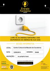 Saiba como reduzir ao máximo o desperdício de energia, conseguindo um consumo mais eficiente. A DECO e a Câmara Municipal organizam uma sessão de informação sobre a energia fantasma, a realizar na terça-feira, dia 12 de maio, às 16H, no Centro Cultural. Saiba como retirar da sua fatura mensal o peso daqueles euros a mais.