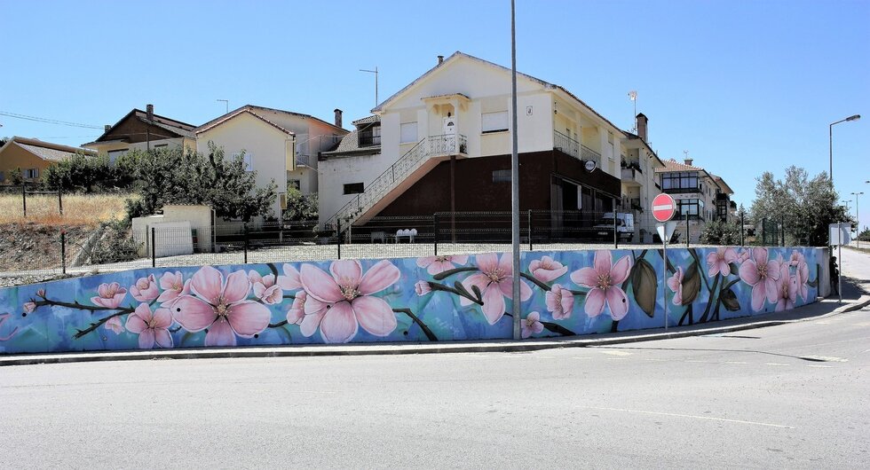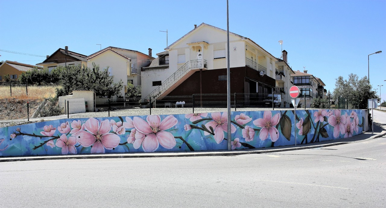 A parede de um dos campos de ténis do Parque de Campismo, a fachada poente da Biblioteca Municipal, o muro da Rotunda dos Vasos, na Avenida Vasco da Gama e a Central de Camionagem, serviram de inspiração a este conterrâneo das terras de Vilariça.