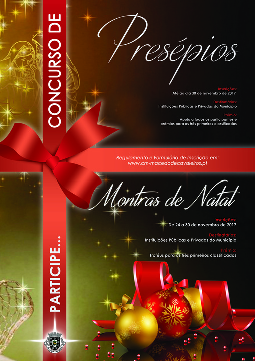 Consulte o Regulamento do Concurso de Presépios e Montras de Natal e tenha acesso à Ficha de Inscrição em http://www.cm-macedodecavaleiros.pt/pages/158?folder_id=831